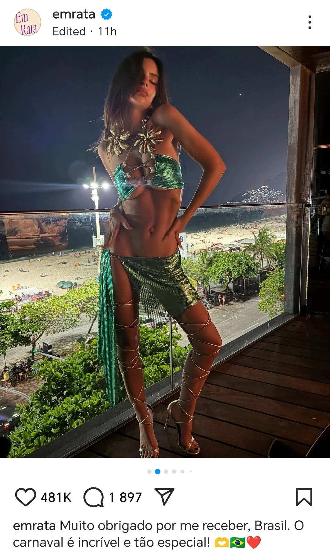 Emily Ratajkowski a riói karneválon bulizott. A 33 éves modell az eseményhez illő, elképesztően merész ruhába bújt, a hiányos öltözet alig takart valamit. A kiruccanásról és a különleges szettről közösségi oldalára is posztolt néhány fotót.