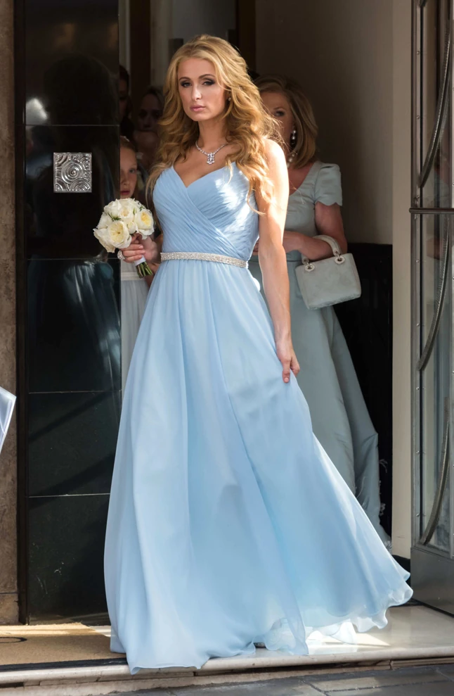A nagy napról természetesen Nicky botrányhős nővére, Paris Hilton sem hiányzott. A többi koszorúslánnyal egyetemben bájos, világoskék Dennis Basso ruhában ünnepelte testvérét.