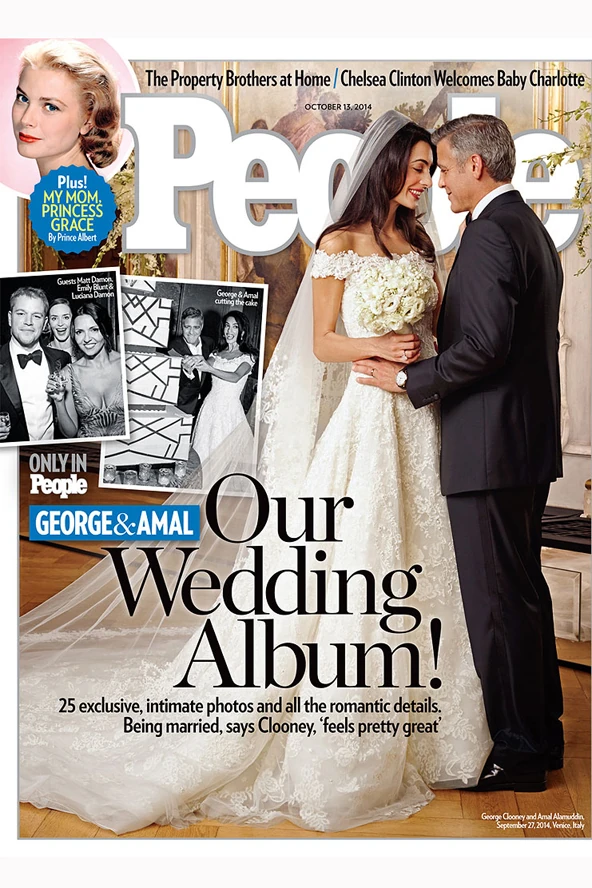 A nagy napon a még mindig iszonyatosan vonzó George Clooney fekete szmokingot viselt csokornyakkendővel, ezt kedves barátja, Giorgio Armani tervezte neki. Az ara pedig egy lehengerlő, vállra ejtett, uszályos csipke ruhában ment hozzá szíve választottjához, melyet nem más, mint az estélyi és a menyasszonyi ruhák nagymestere, Oscar de la Renta álmodott meg számára. "Olyan elegáns dizájner és olyan elegáns ember" – mondta Amal, és valóban, mi sem jellemezhettük volna jobban a dominikai származású amerikai tervezőt és a ruhát.