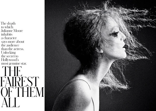 A csodálatos képeket az Inez és Vinoodh fotóspáros készítette. Julianne Moore védjegynek számító vörös fürtjei állnak a drámai erejű portrék középpontjába. Ilyen szemet gyönyörködtető fotókat még a legszínvonalasabb divatmagazinokban sem látni minden nap, ezért is osztjuk meg veletek is.