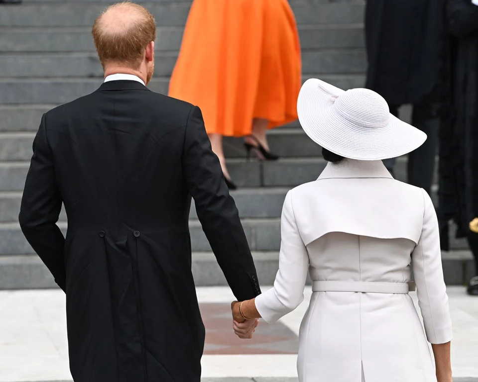 Azonban nem hiába utazott az uralkodó házat formálisan két éve elhagyó hercegi pár újra Londonba, nem rejtőzködtek végig a színfalak mögött, hiszen ők is részt vettek a második nap fontos eseményén. Amikor Szent Pál-székesegyházban tartott hálaadó misét tartottak a királynő tiszteletére.