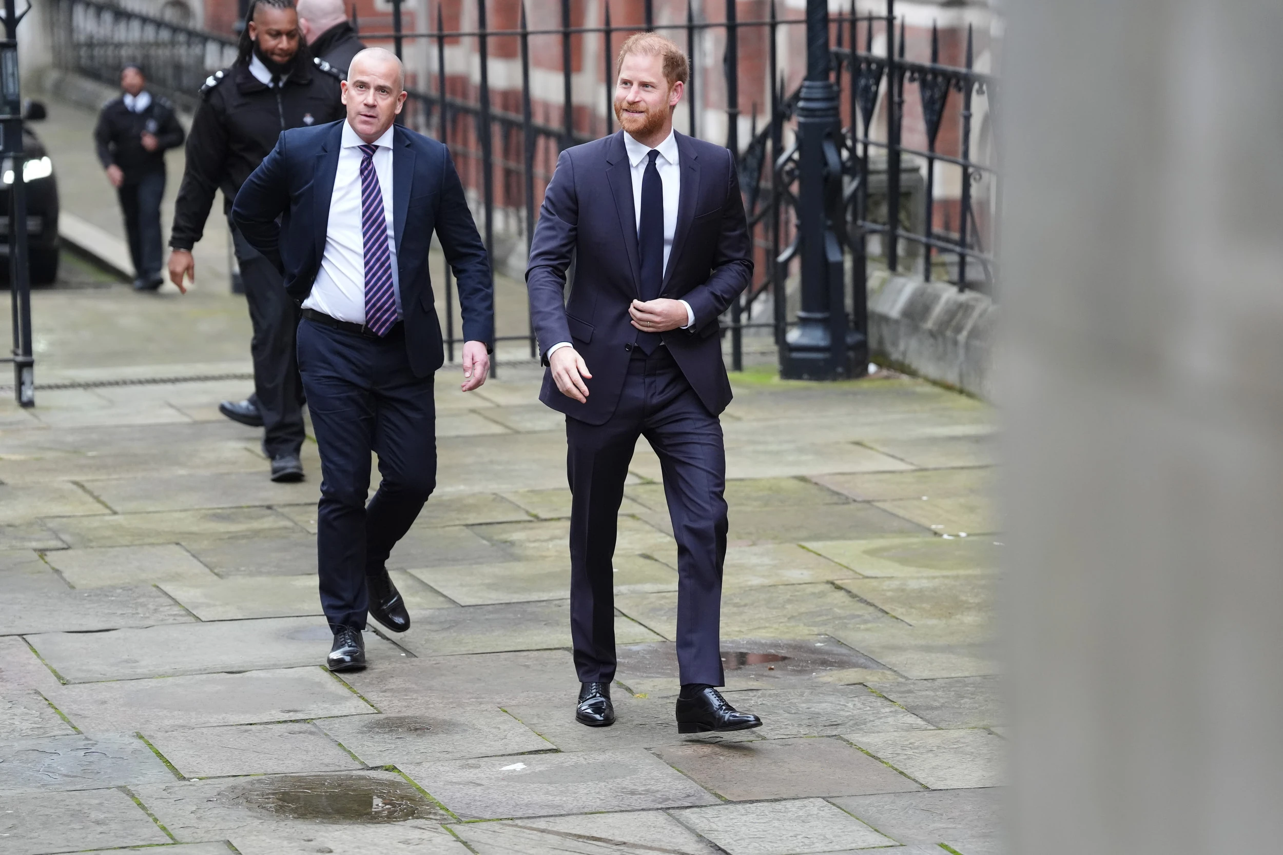 Harry herceg elegáns, sötétkék öltönyben, sötétkék nyakkendőben és fehér ingben jelent meg a londoni High Court bíróság előtt, ahol integetéssel üdvözölte az összegyűlt tömeget, mielőtt belépett az épületbe.