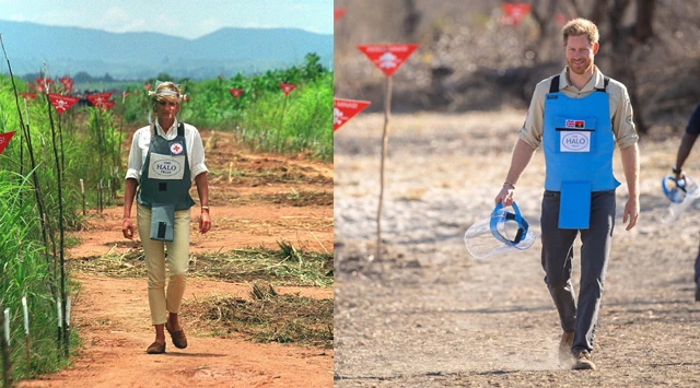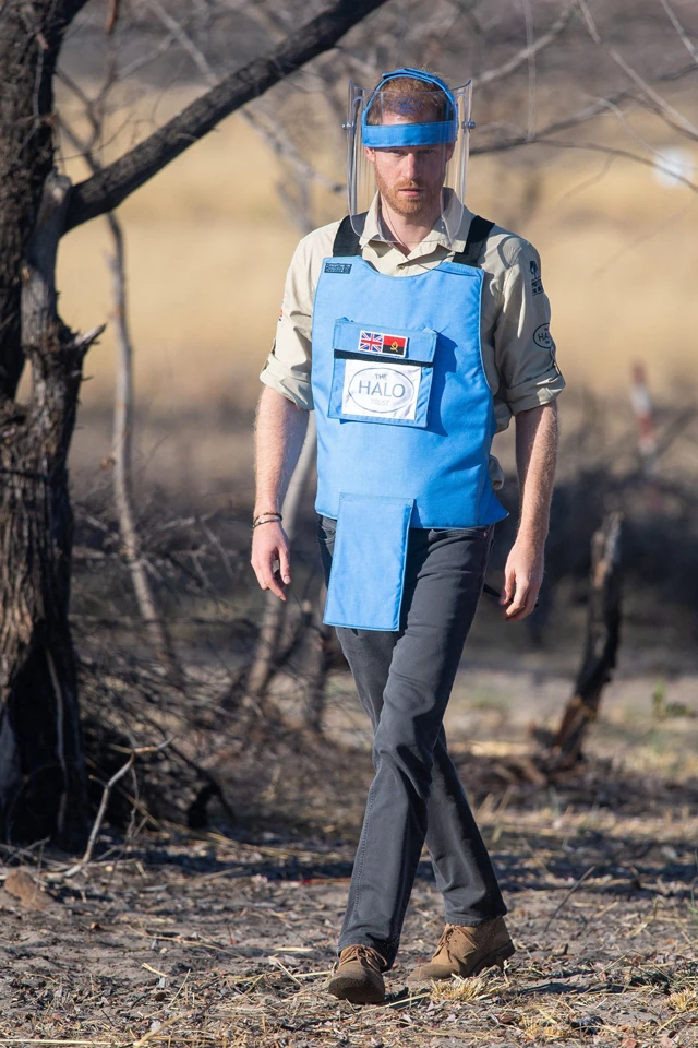 Harry soron következő állomása Angola, ahol ő is ellátogatott az aknamezőkre, ahogyan Diana is tette 22 évvel ezelőtt. A hercegné fotói, amint védőruhában megy végig az életveszélyes terepen azonnal bejárták a világot. Diana ezzel az itt élő embereket fenyegető veszélyre akarta felhívni a figyelmet és nyomást gyakorolni a kormányra, hogy betiltsák a fegyvereket.