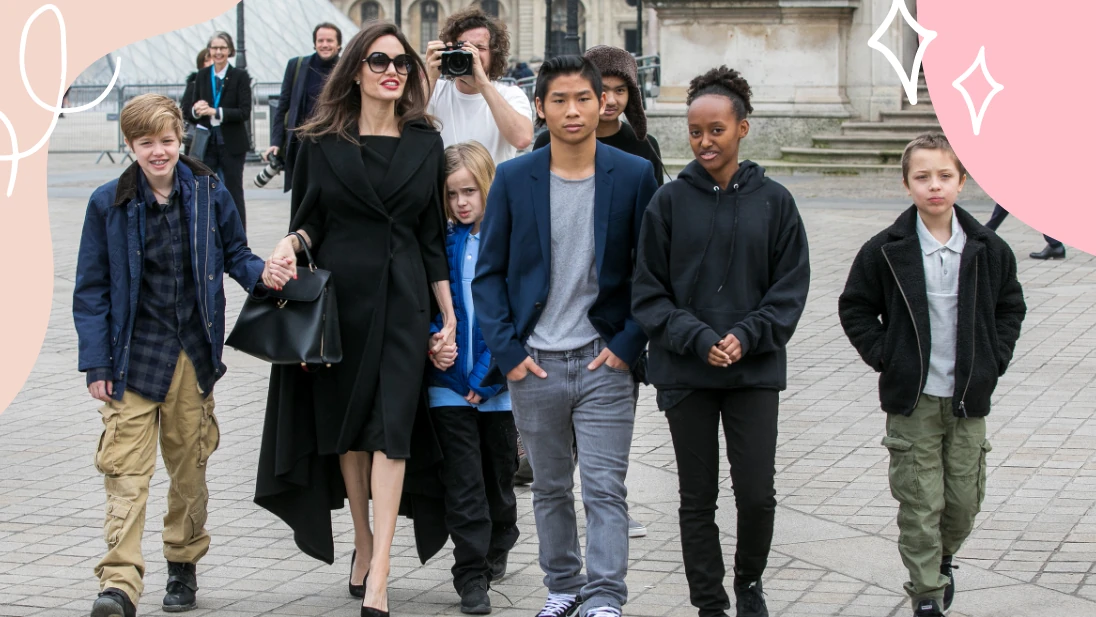 Biológiai gyermekeik (Shiloh, Knox és Vivienne) mellett, Pitt és Jolie Maddoxot, Paxot és Zaharát fogadták örökbe Kambodzsából, Vietnamból, illetve Etiópiából. Jolie az örökbefogadott gyerekeiről azt mondta: "Ők a legnagyobb kisemberek, akikkel valaha találkoztam, és rengeteg örömet okoznak nekem."