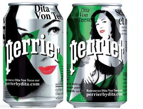 A víz legújabb arcának a sztriptíz koronázatlan királynőjét, Dita Von Teese-t kérték fel, a mostanában nemcsak a rúdnál, hanem az író-olvasó találkozokón is jeleskedő sápatag szépség természetesen mident megtett, hogy kelendő legyen a termék. A Perrier nem akarta, hogy Dita kivetkőzzön magából, pontosan azt várták tőle, amiben a legerősebb. Most ugyan nem kellett könyvet írnia az ásványvíz-fogyasztásról, de elbűvölő erotikus kisugárzását azért felhasználták a reklámhoz.