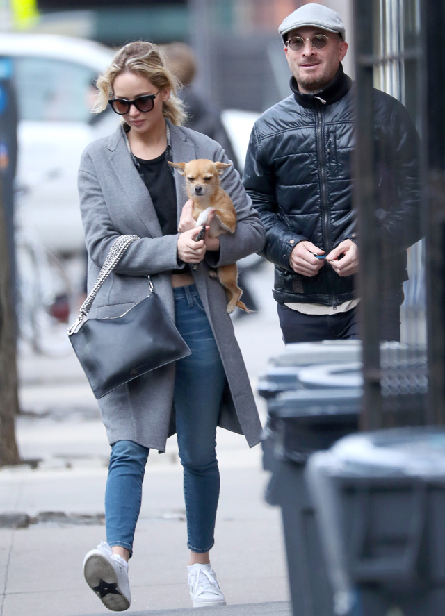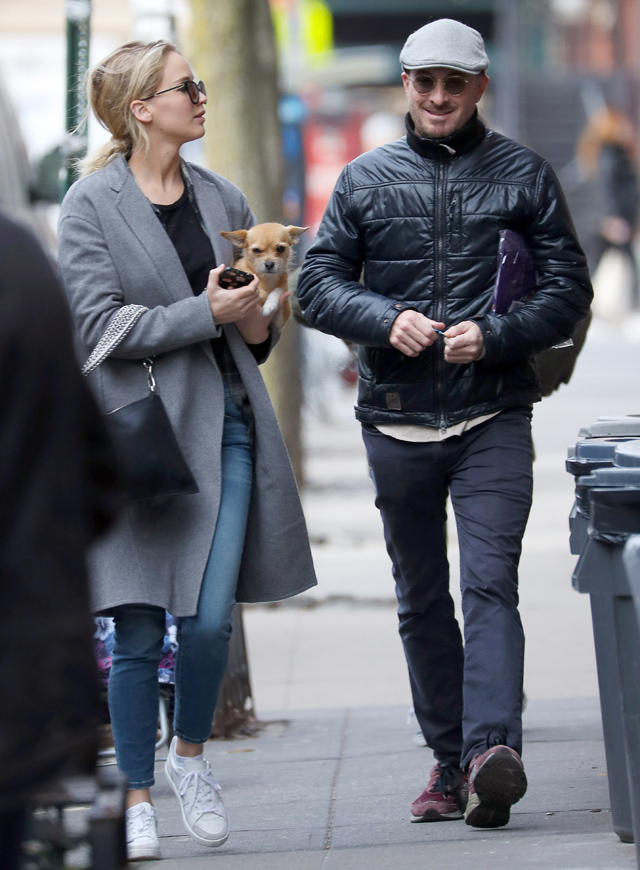 Jennifer Lawrence és kutyája, Pippi valamint Darren Aronofsky: