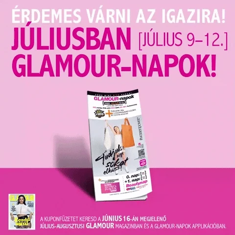 A kuponfüzetet tartalmazó extravastag júliusi-augusztusi GLAMOUR magazin június 16-án jelenik meg. Megveheted a GLAMOUR-napok előtt digitálisan is a GLAMOUR Shopping telefonos applikációban! Már nem kell sokat aludni! Érdemes várni az igazira!