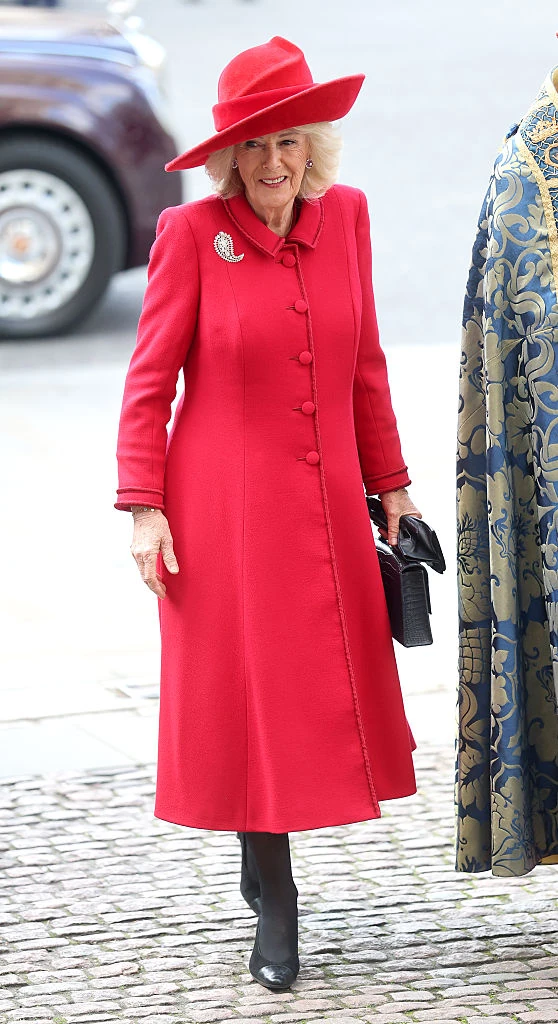 A hétfői eseményen Kamilla királyné egy élénk skarlátvörös, egyedi készítésű kabátruhát viselt, amelyet Fiona Clare tervezett. A szettet egy elegáns Philip Treacy kalappal és fekete magassarkúval egészítette ki. Ami igazán feltűnhetett a szemfüleseknek, az a harisnya volt: Kamilla királyné áttetsző fekete harisnyát választott, ami korábban kifejezetten kerülendőnek számított a királyi öltözködési etikett szerint.
