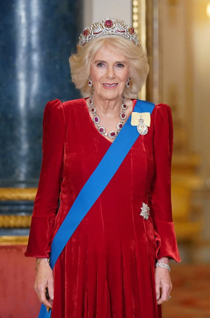 Kamilla királyné jó néhányszor tündökölt már Károly király mellett, de a királyi család legutóbbi hivatalos eseményén az egész palotát beragyogta. Vörös bársonyruhájában és hozzá passzoló, rubinnal kirakott tiarájában mindenkit elvarázsolt.