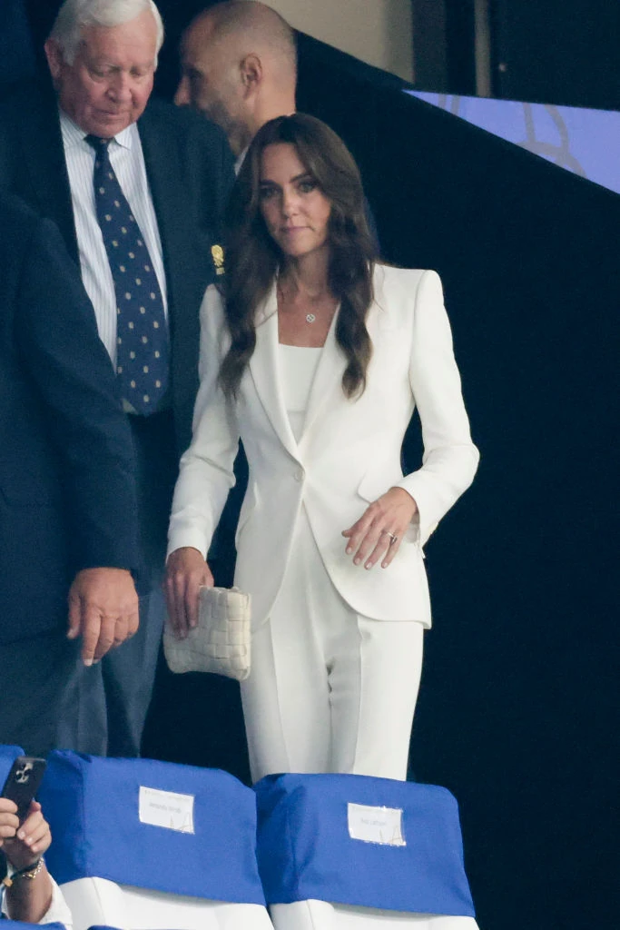 Katalin hercegné most Franciaországban mutatta meg kiváló és kifogástalan stílusérzékét. A rögbi világbajnokságra érkezett ikon egy fehér Alexander McQueen nadrágkosztümöt viselt, miközben a brit csapatnak szurkolt. Zseniális!