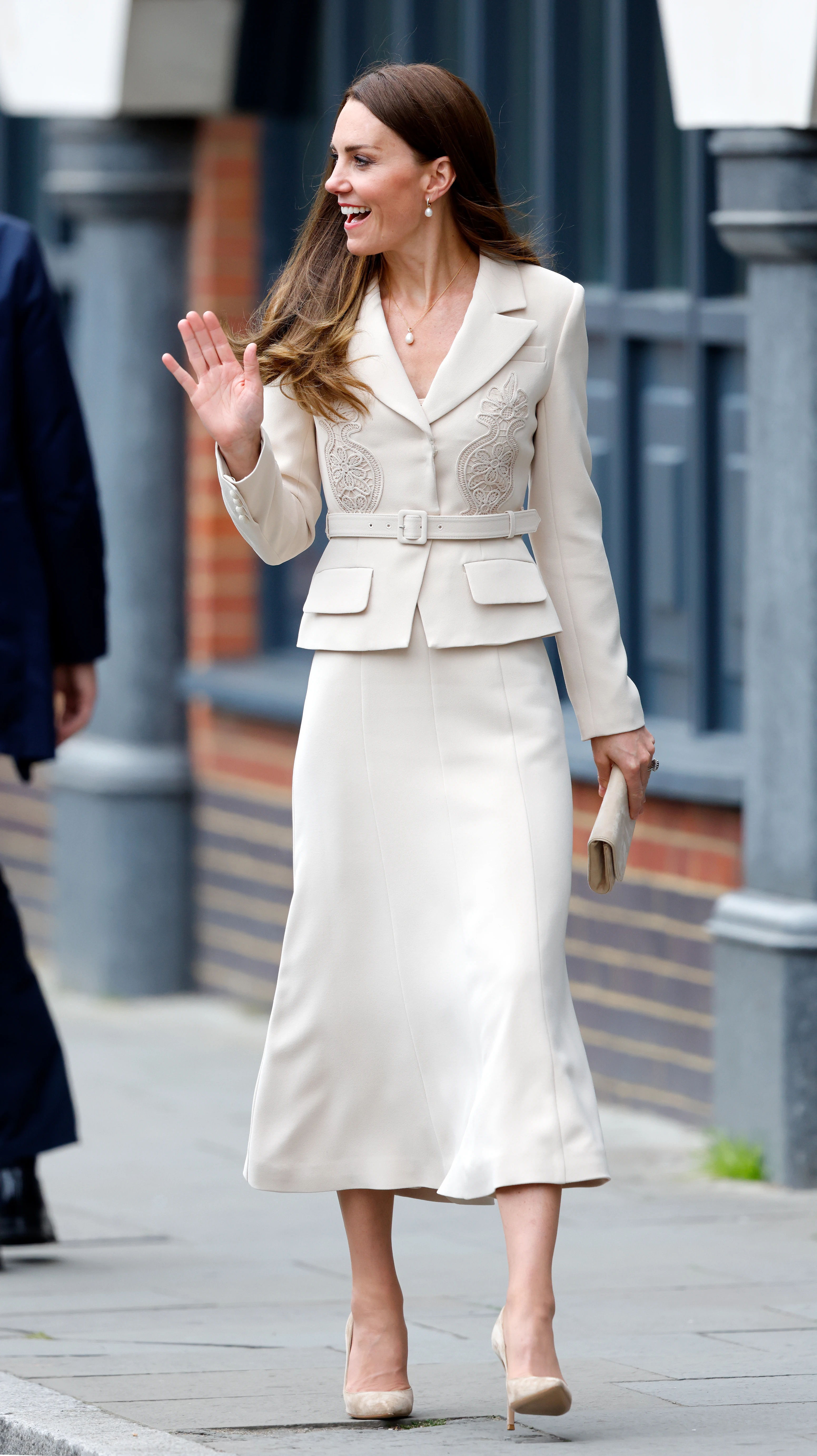 A kórházi intézmény látogatása során Katalin hercegné egy szofisztikált, bézs Self-Portrait ruhát viselt!