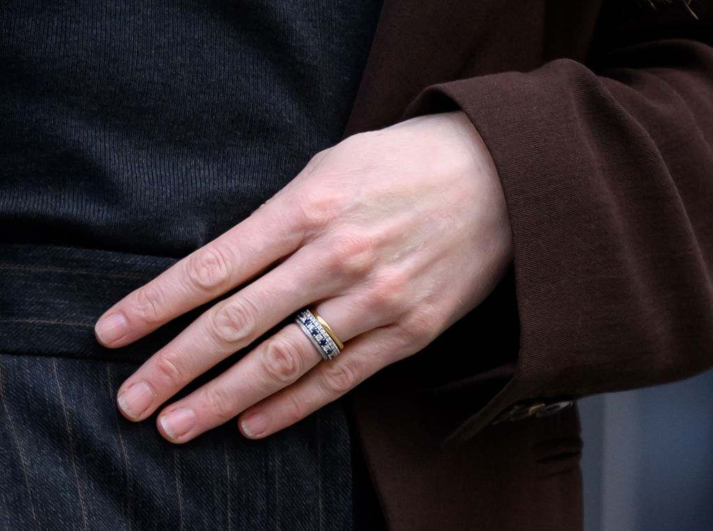 Legutóbbi programjai után pedig újra beszédtémává vált az is, hogy milyen gyűrűt hord az ujján. A sasszeműek először ősszel szúrhatták ki, hogy Katalin hercegné az eljegyzési gyűrűjét egy másik ékszerre cserélte, azóta pedig felváltva hordja őket, vagy pedig együtt: a vastag aranygyűrű gyémántokkal és zafírokkal van kirakva és tökéletesen passzol az ikonikus eljegyzési gyűrűhöz is.