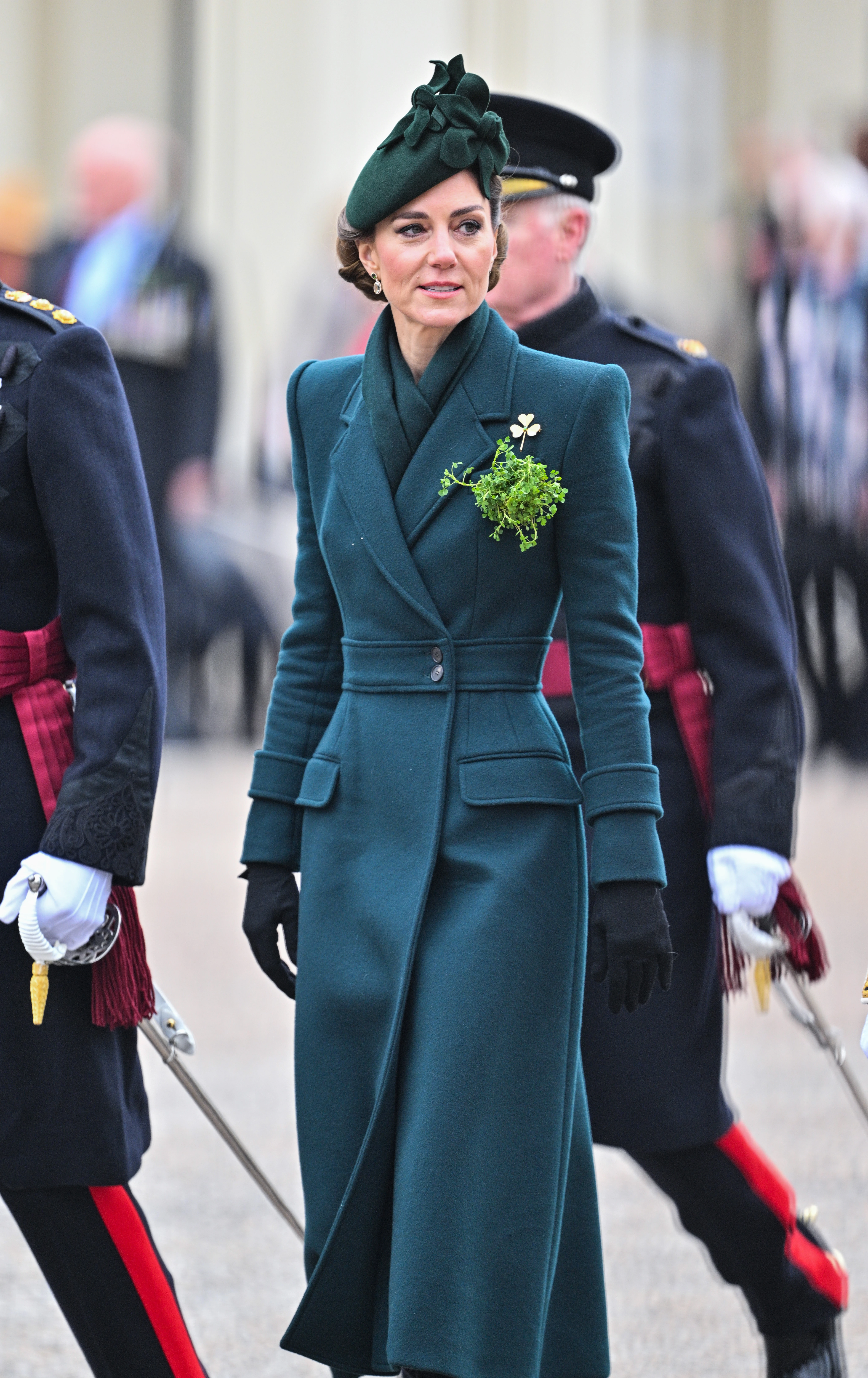 Katalin hercegné március 17-én a Szent Patrik-napi parádén vett részt Londonban, a Westminsterben található Wellington Barracksban. A walesi hercegné tavaly egészségügyi problémái miatt nem tudott részt venni az eseményen, így a mostani megjelenése különösen nagy jelentőséggel bírt. Mutatjuk a lenyűgöző szettet, amivel mindenkit elvarázsolt!