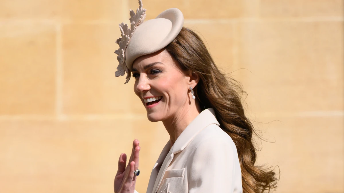 Katalin hercegné a fenntarthatóság jegyében egy korábban már viselt, krémszínű Self Portrait ruhát választott, amely egy csipke rátétekkel díszített, blézerszerű felsőrészből és egy lágy esésű szoknyából állt - írta meg a Vogue. Vilmos herceg felesége bahreini gyöngyfülbevalókat, karamellszínű DeMellier táskát és arany Ralph Lauren cipőket viselt kiegészítők gyanánt. Az újdonság a fejfedője volt: egy krémszínű, levélmintás kalapot választott az alkalomra Juliette Botterilltől.