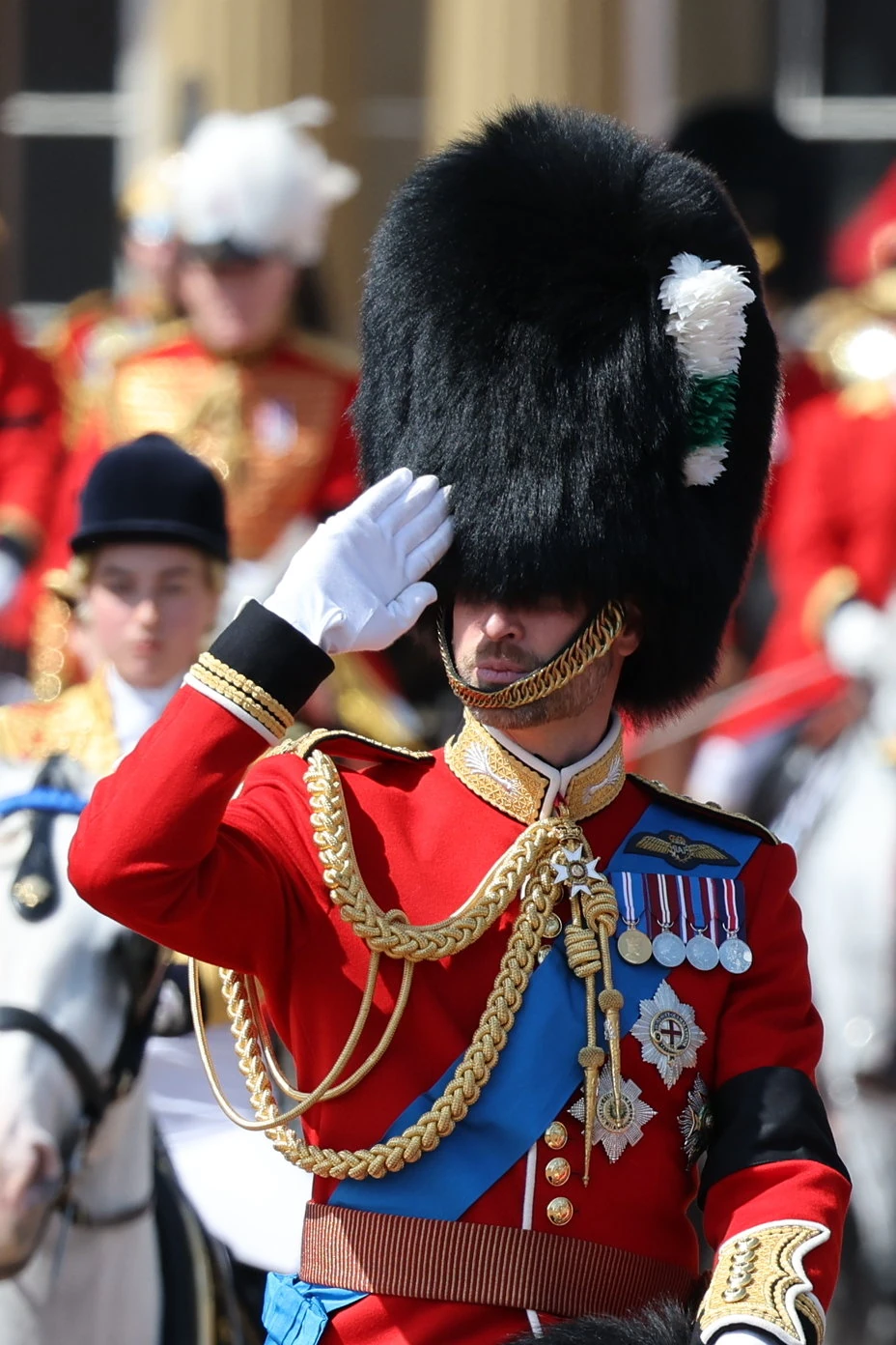A Trooping the Colour minden évben lenyűgözően látványos: mindig izgalmasnak ígérkezik a repülős bemutató, de ugyanilyen érdekes és fontos a katonai felvonulás is, melyet a királyi család vezet. Károly király és Kamilla királyné nyitott tetejű hintóban utaztak a Buckingham-palota felé vezető The Mall-on, ahol több ezer néző éljenezte őket. Őket követte Vilmos herceg, Anna hercegnő és Eduárd herceg lóháton, mindhárman fekete karszalagot viselve az Air India repülőgépszerencsétlenség áldozatainak tiszteletére. Utánuk következett a Katalint és három gyermekét szállító hintó, majd pedig a gárda többi tagja.