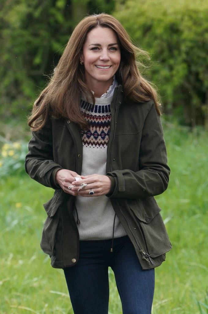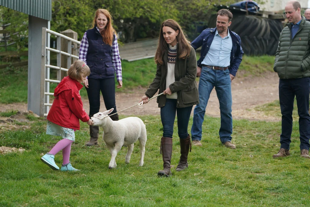 De azért a báránysétáltatás sem ok arra, hogy például Katalin hercegné ne hozza a tőle megszokott sikkes stílust, még ilyen vidéki kiadásban is. Egy mintás Brora x Troy London kötött pulóverben, farmerben, szeretett barna Penelope Chilvers csizmájában és egy sötétzöld, military stílusú kabátban élvezte a szabadlevegőt.