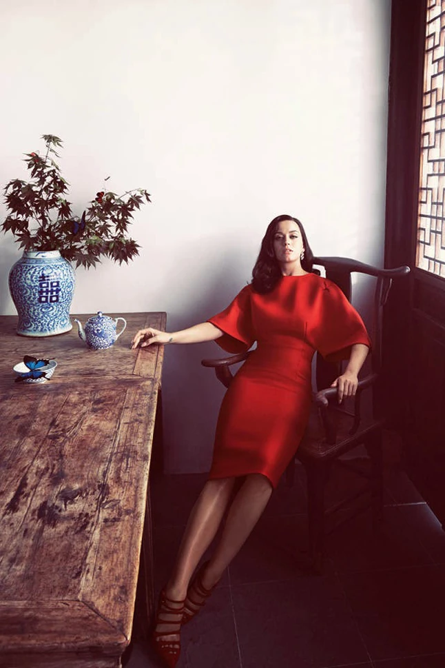 A Harper's Bazaar októberi számának címlapján a popsztár a hozzá legközelebb álló glamúros, kissé pin-upos stílusban pózol, a magazin hasábjain viszont már egy keleties hangulatú, sőt ősz helyett inkább tavaszias fotósorozatban láthatjuk őt.