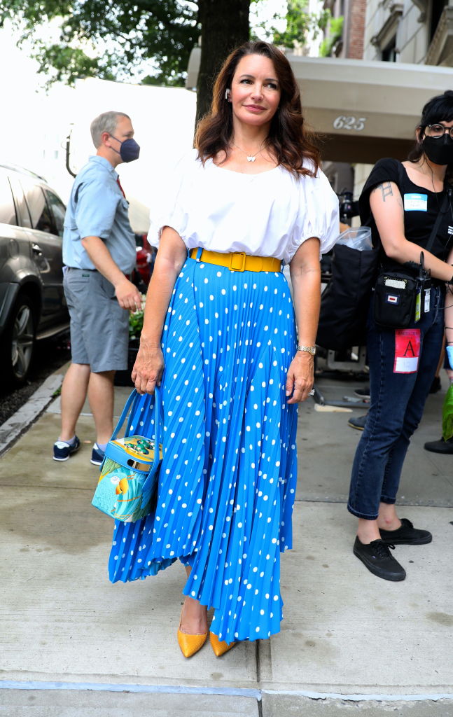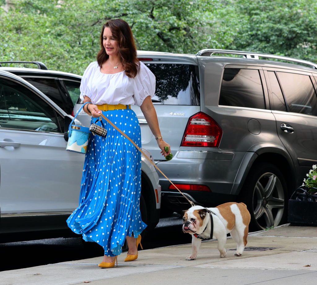 Ehhez képest pedig a Charlotte-ot alakító Kristin Davis pedig továbbra is az olasz életérzést sugározza szettjeivel, ez a kék alapon fehér pöttyös szoknya viszont egy Balenciaga darab, úgyhogy borítékolható, hogy ez a limitált széria is dagadni fog a trendibbnél trendibb szettektől.