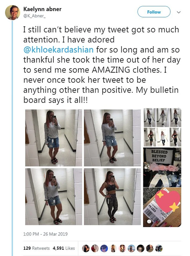 Khloé nem vette zokon a célzást, hogy drágák a termékek, sőt inkább megragadta az alkalmat, hogy küldjön egy csomag ruhát a lánynak azzal az üzenettel, hogy legyen nagyon pozitív az életben.