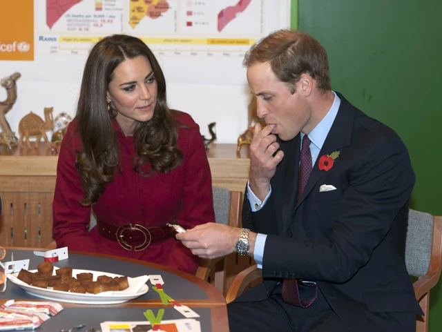Bár a kamerák előtti evés mindig kockázatos, Kate és Vilmos nem tudtak ellenállni annak a rengeteg finomságnak, amit a kanadai körútjukon felszolgáltak nekik. Egy étel és borfesztiválon Brit Columbiában a hercegné megkóstolt egy iszapkagylót (falloszkagyló) miso mustáros szósszal és megjegyezte, "nagyon különleges. Még soha nem láttam ilyet. Annyira friss a tengerből".
