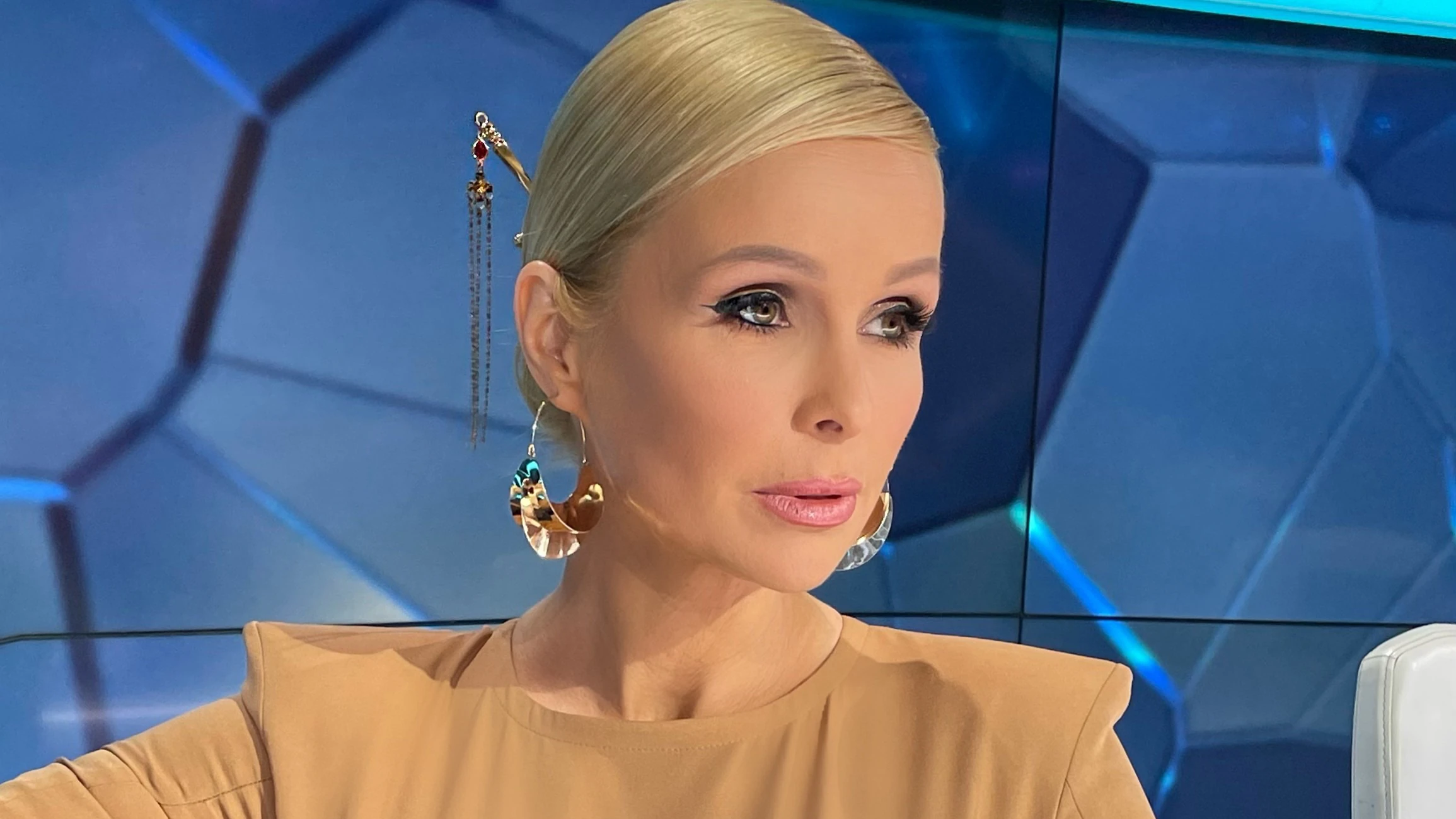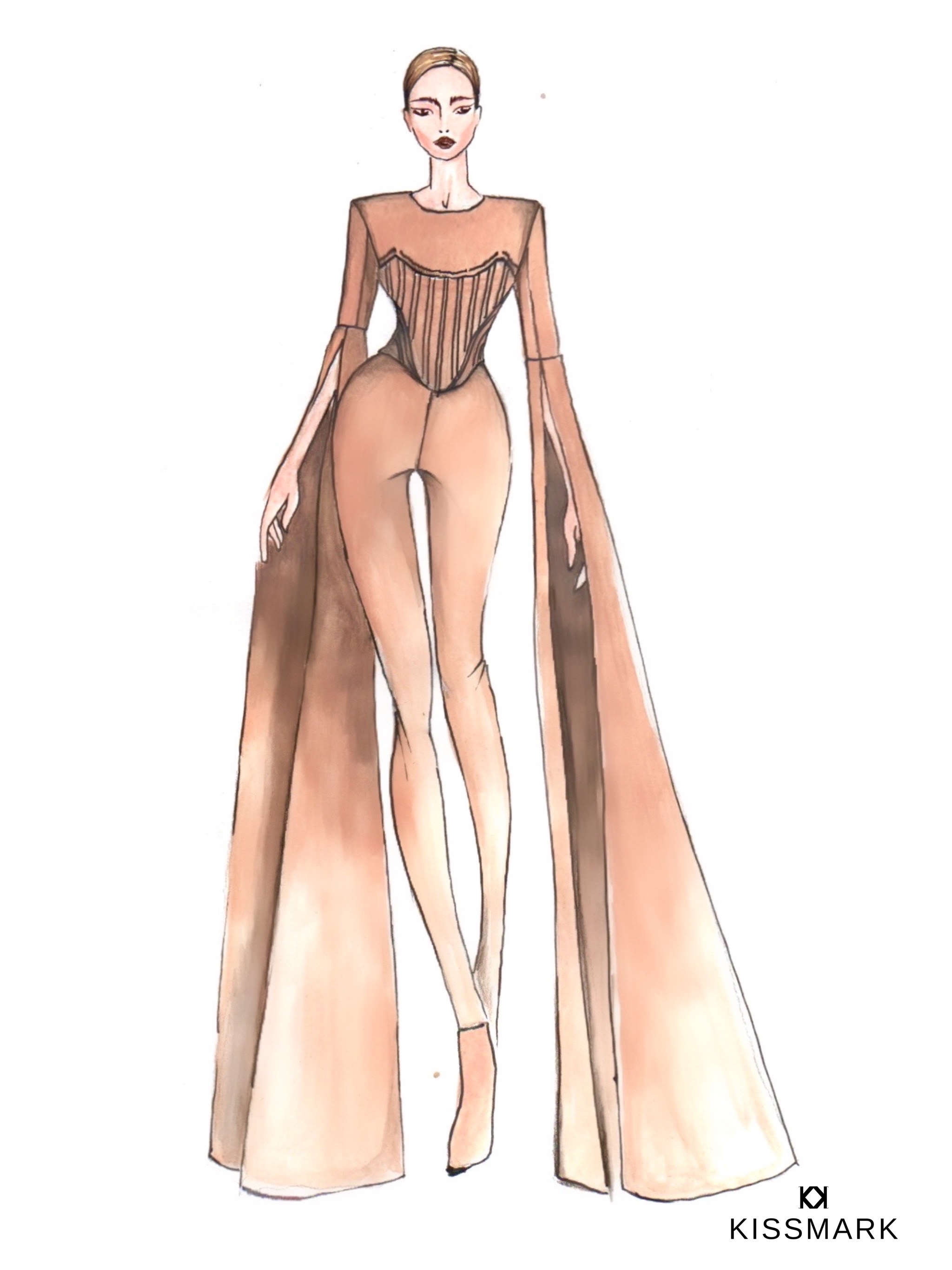 Egy öltözéket meghatároznak a színei és a textúrái, ezek adják a megjelenés alapját, sokszor ezekből indul ki egy divattervező. „A ruha színe is semlegesebb az előző adáséhoz képest, egy matt, karamell árnyalat. Ezzel a visszafogottsággal, minimalizmussal teret adtam a beautyrészlegnek, mert így Babett sminkje, frizurája hangsúlyos maradhatott. A szett dekoratív elemeit a fűző kontúrjai, a halcsontházak adják, mindezt monokróm összhatásban képzeltem el. Az öltözék feszességét a földig érő, tölcsér formjú ujjakkal oldottam meg és tettem még izgalmasabbá. Arany kiegészítőket társítottam az outfithez, a szamurájkard formájú hajtű egy kis ázsiai hangulatot kölcsönöz Babett megjelenésének.” – folytatta Kiss Márk, akit egyébként batári viszony fűz a színésznőhöz.
