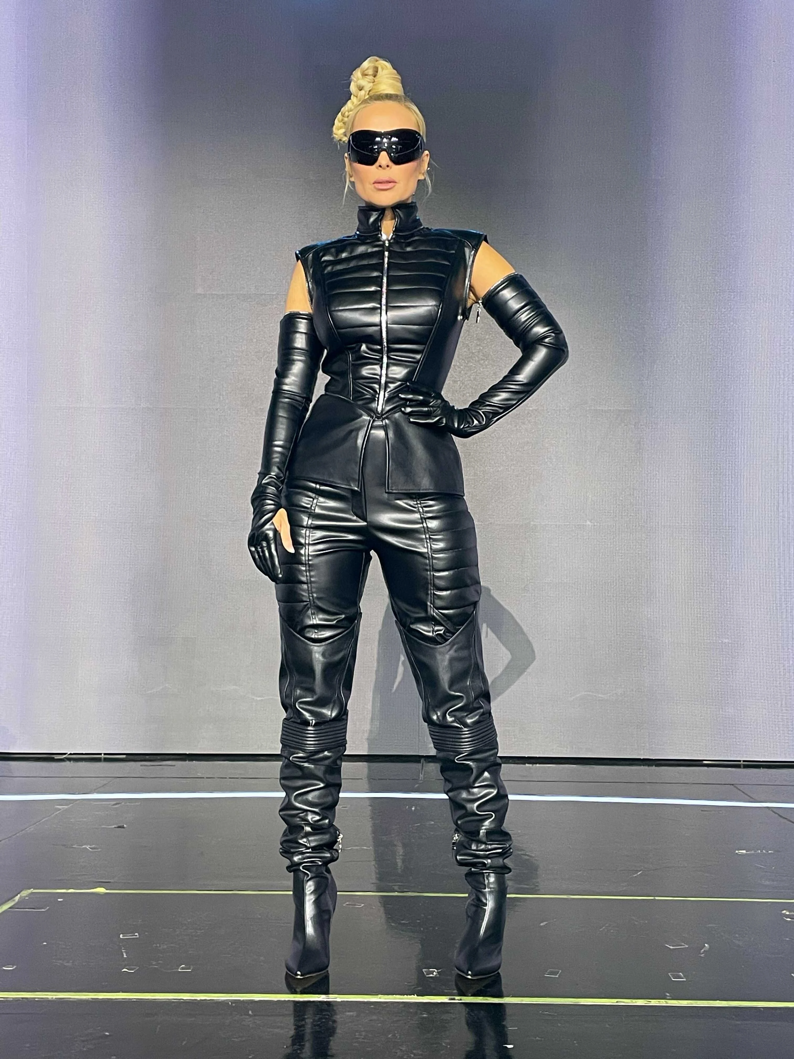 Köllő Babett egy vagány, bőrből készült, huszármente inspirálta motoros jellegű szerelésben ült be a Sztárban sztár leszek! zsűrijébe