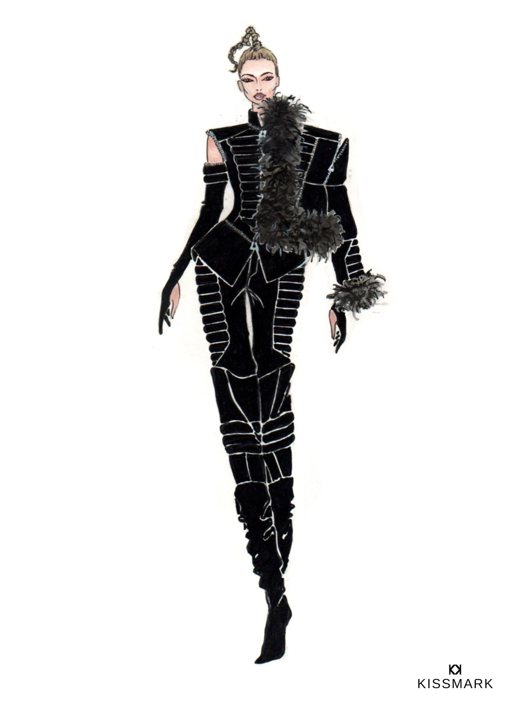 „Ezt én puha fekete strucctollra cseréltem, mert szerettem volna, hogy a kemény összhatást oldja valami, és ehhez egy finom, bolyhos és nőies textúra társulna.” – mondta Márk.