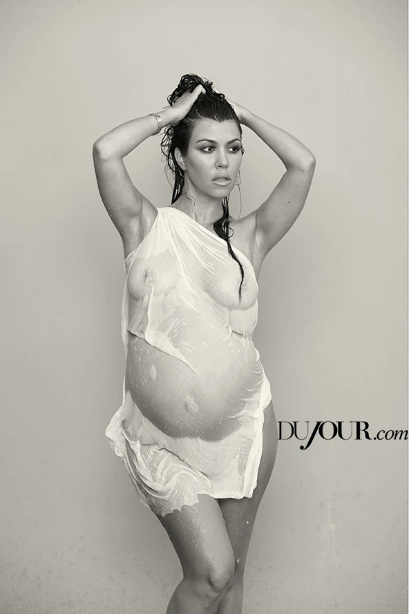 Kim Kardashian megpróbálta kirobbantani az internetet meztelen fenekével a Paper magazin címlapján, de nővére Kourtney igencsak jó ellenfélnek bizonyul. A 35 éves valóságshow-sztár harmadik gyermekét várja, és terhességének utolsó hónapjait mindenképpen szerette volna megörökíteni. Ezért fogadta el a DuJour magazin felkérését, és pózolt meztelenül Brian Bowen Smith kamerája előtt.