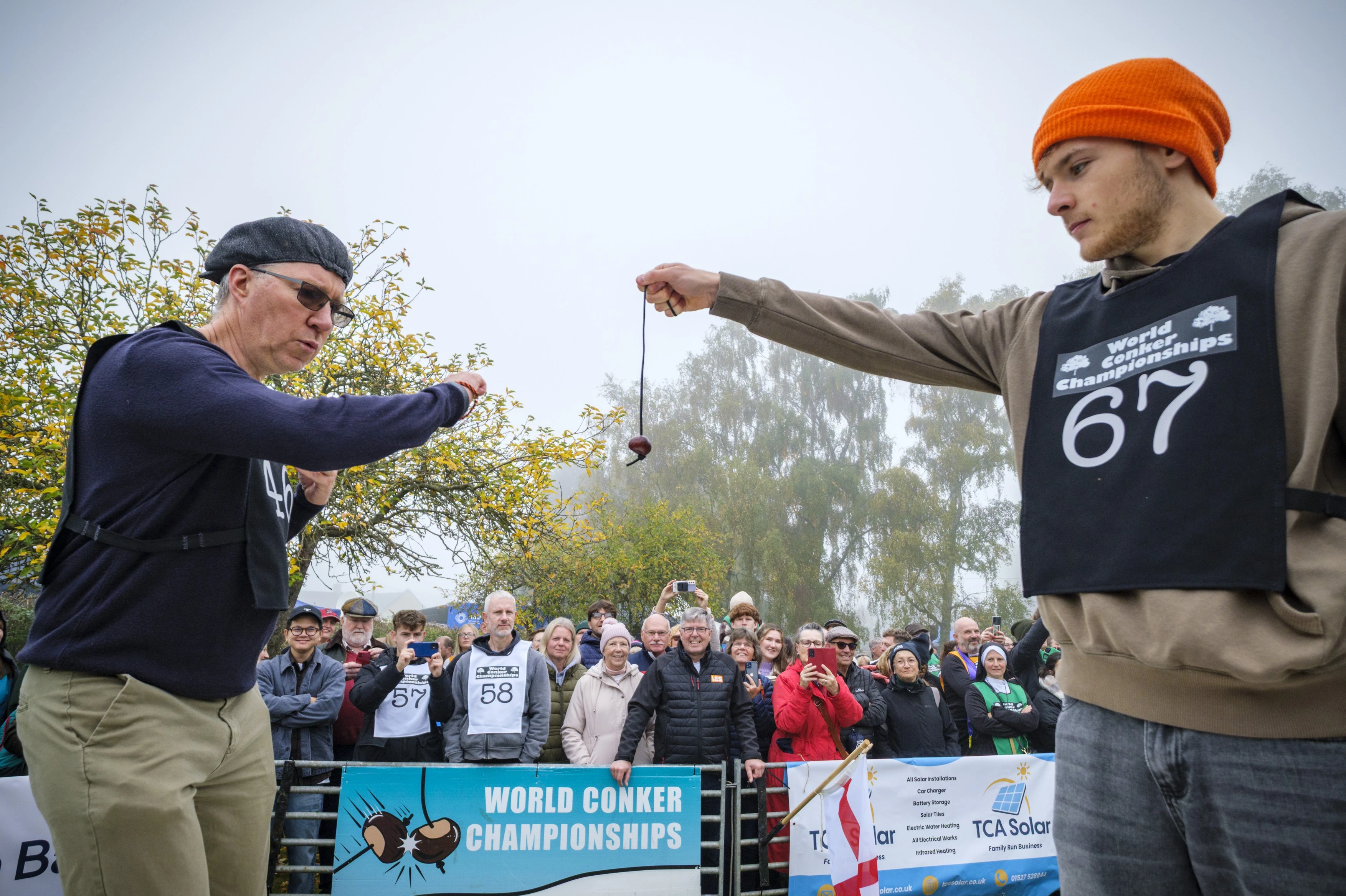 Az idei világbajnokságot vasárnap rendezték meg a nyugat-sussexi Southwickben, ahol kilenc különböző országból érkeztek versenyzők, köztük Japánból is. Az esemény biztonsági intézkedéseit jelentősen szigorították, miután a tavalyi versenyt csalási botrány árnyékolta be. A férfi bajnokot, David Jakinst azzal vádolták, hogy acélból készült diót használt, ami szabályellenes.