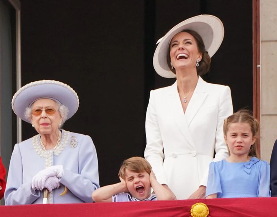 A most négyéves Lajos herceg egész nap fantasztikusan édes volt, valahogy mindig mást csinált, mint kellett volna. Az erkélyen aztán az egész királyi családot megnevettette, szóba elegyedett a királynővel, és elég egyértelműen jelezte, hogy számára nem éppen a legszórakoztatóbb a légi parádé.