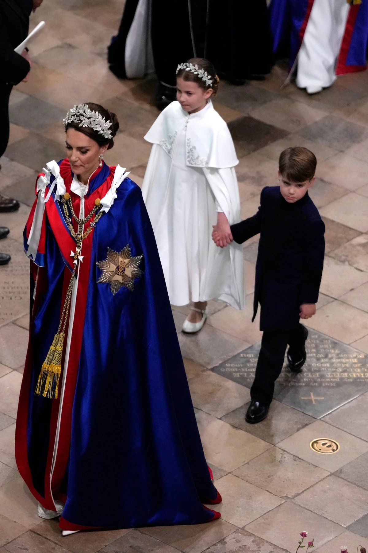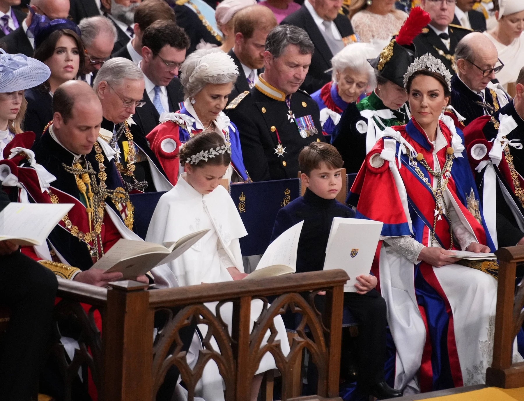 György herceg a király tiszteletbeli apródjaként különösen megtisztelő szerepet kapott nagypapája nagy napján, amelyet fegyelmezetten teljesített a Westminster-apátságban rendezett szertartáson. Lajos herceg és Sarolta hercegnő így ezúttal kivételesen bátyjuktól kissé távolabb követték az eseményeket – de ismét mindenkit elbűvöltek a cukiskodásukkal.