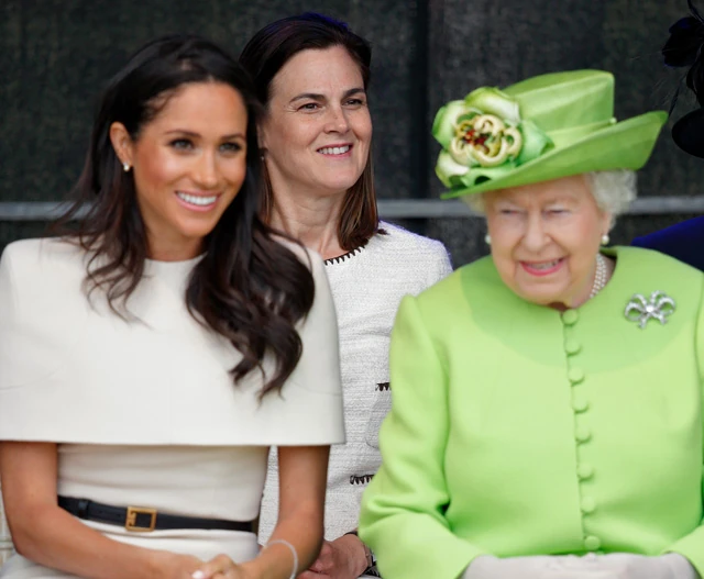 Meghan Markle, Samantha Cohen (középen) és Erzsébet királyné: