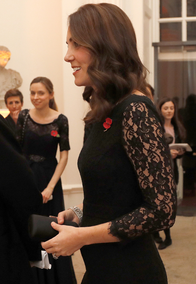 A csipkés ujjú, fekete ruha kellően testhez álló volt ahhoz, hogy egyértelműen meg lehessen állapítani, hogy az előkelőség pocakja már bizony jól láthatóan gömbölyödik. Reméljük, ezúttal semmi komplikáció nem zavarja meg a várandósságát, és még jó párszor látjuk a gyönyörű kismamát.