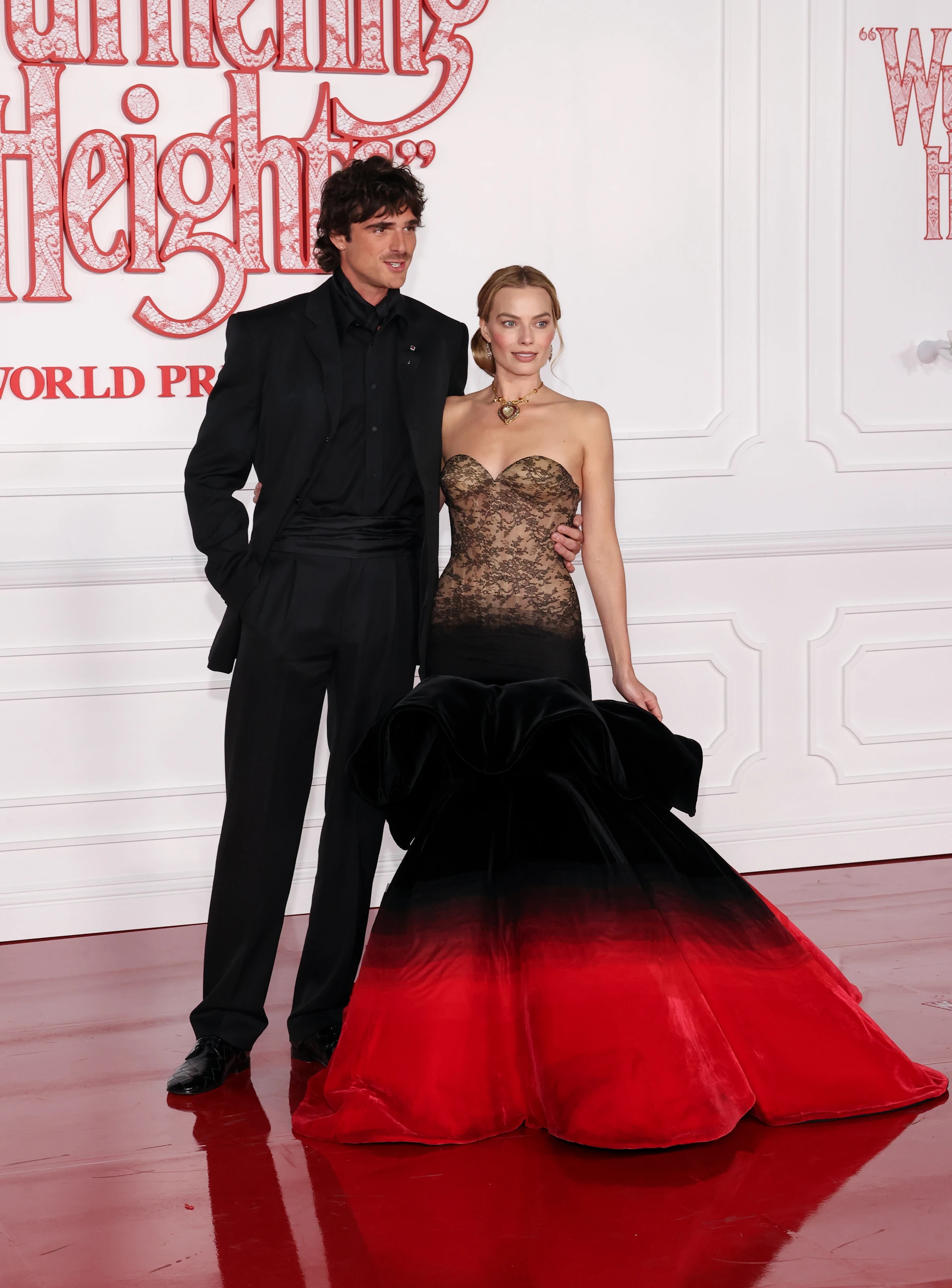 Filmbeli partnere, a Heathcliffet alakító Jacob Elordi egy teljesen fekete szettben feszített a színésznő mellett, akivel elmondásuk szerint szinte egymásra függtek a forgatás alatt - írja a Daily Mail.