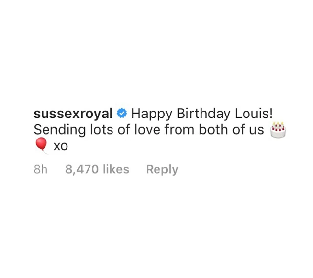 Meghan Markle és Harry herceg extracuki kommentet fűzött a Lajos hercegről készült kép alá