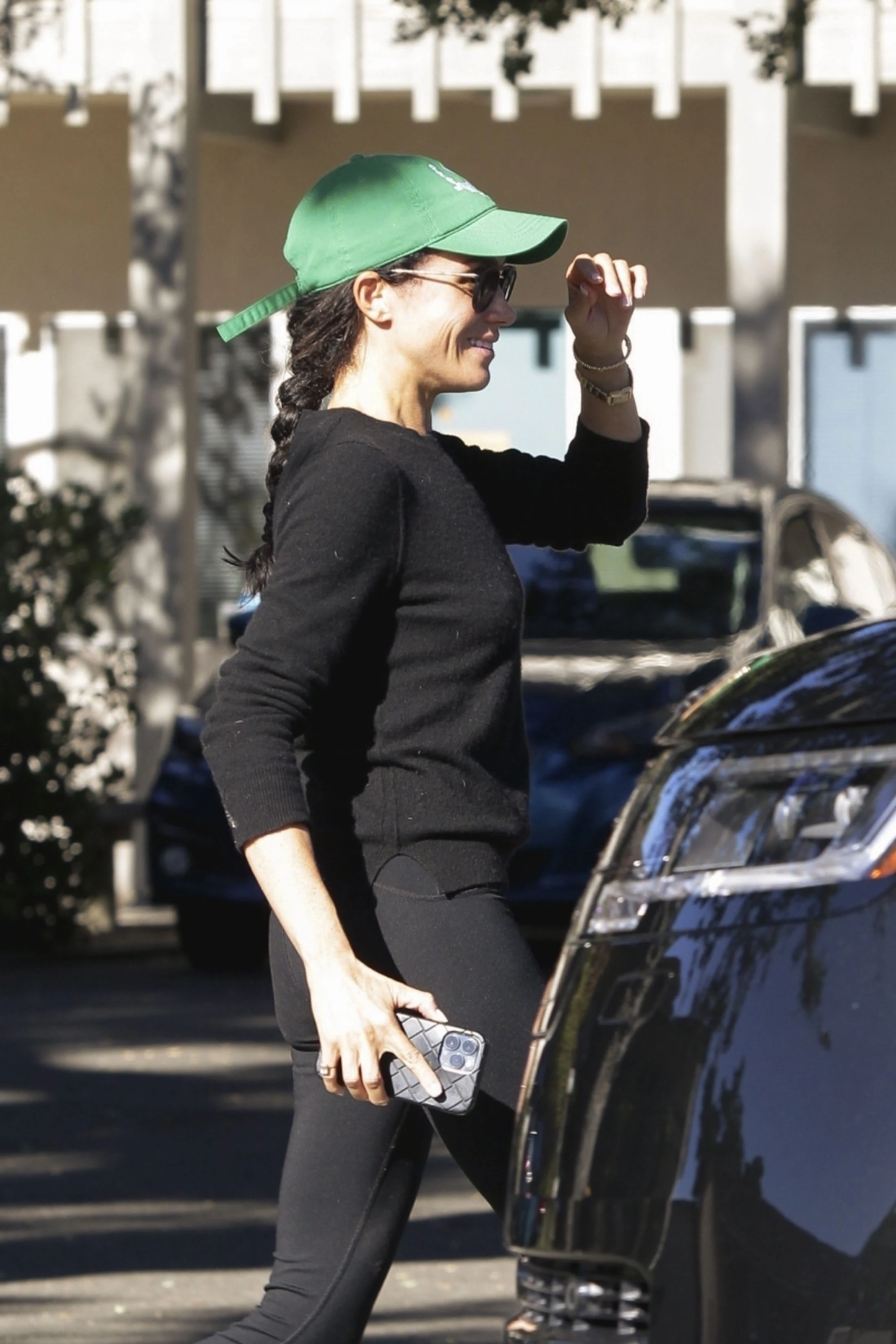 Meghant hétfőn reggel kapták lencsevégre, ahogy testőrével az autójához sétál egy zöld baseballsapkában, fekete leggingsben és fekete pulcsiban, amit azzal a gyémánt karkötővel koronázott meg, amit Károly királytól kapott az esküvője napján.
