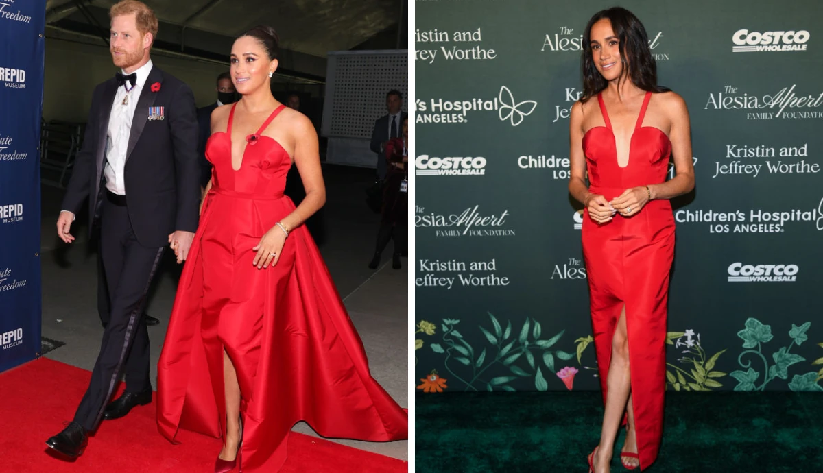 Közben kiderült, hogy a ruha tulajdonképen egy átalakítás végeredménye, Meghan Markle ugyanis egyszer már hordta ezt a darabot, 2021-ben férje oldalán jelent meg egy New York-i gálán az eredeti tűzpiros Carolina Herrera kreációban. Az újrahasznosítás önmagában egy igazán nagyszerű ötlet, hiszen ezzel is felhívja a figyelmet a környezettudatosságra, ugyanakkor sokaknak az az érzése, hogy ezzel a gesztussal is csupán sógornőjét utánozza. Katalin hercegné ugyanis régóta elkötelezett támogatója a fenntartható divatnak.