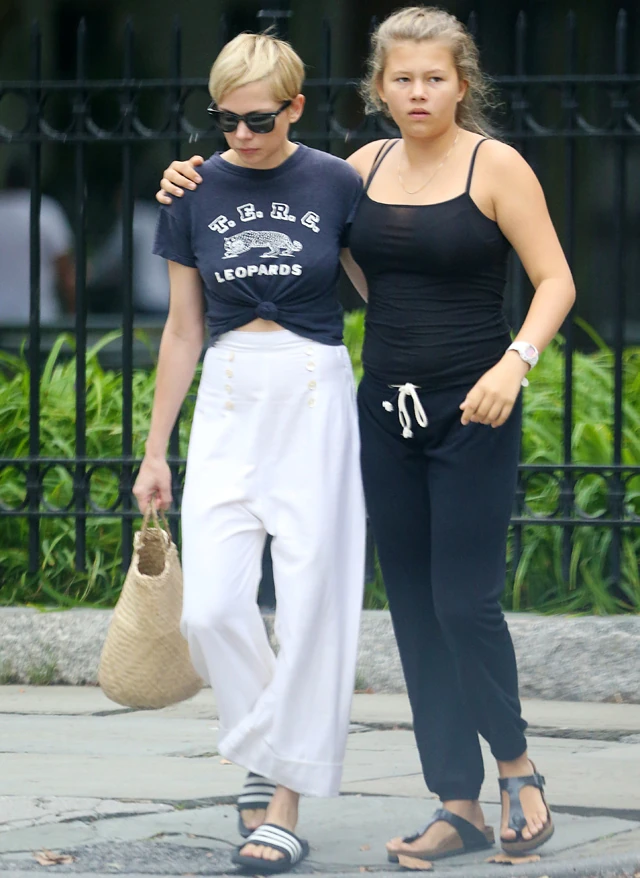 Michelle Williams és kislánya az utcán: