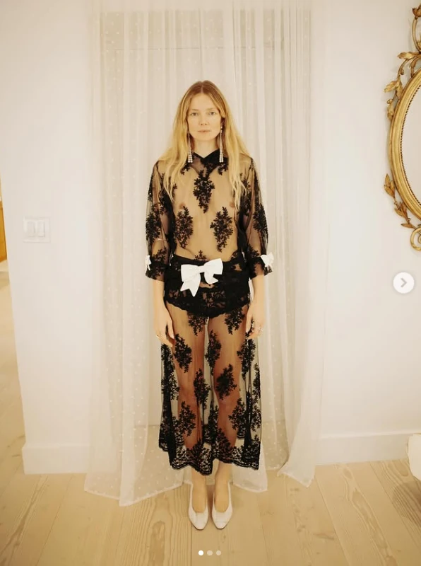 A magyar modell a CARO Editions fekete csipkeruhájába bújt, amit fehér masnik díszítenek. A kreáció önmagában is nagyon sejtelmes, mivel szinte teljesen átlátszó, de Enikő egy merész csavarral még bátrabbá tette az összhatást: melltartót sem visel alatta, így a ruha tényleg alig takart valamit a testéből. Csak úgy sugárzik belőle a sikk, az önbizalom és a felszabadultság!