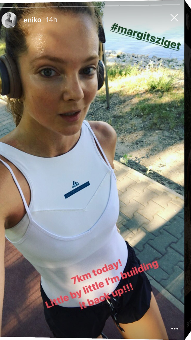 A modell azonban a pihenés alatt sem feledkezik meg az edzésről. Annak érdekében, hogy formában maradjon 7 km-t futott a Margit-szigeten!
