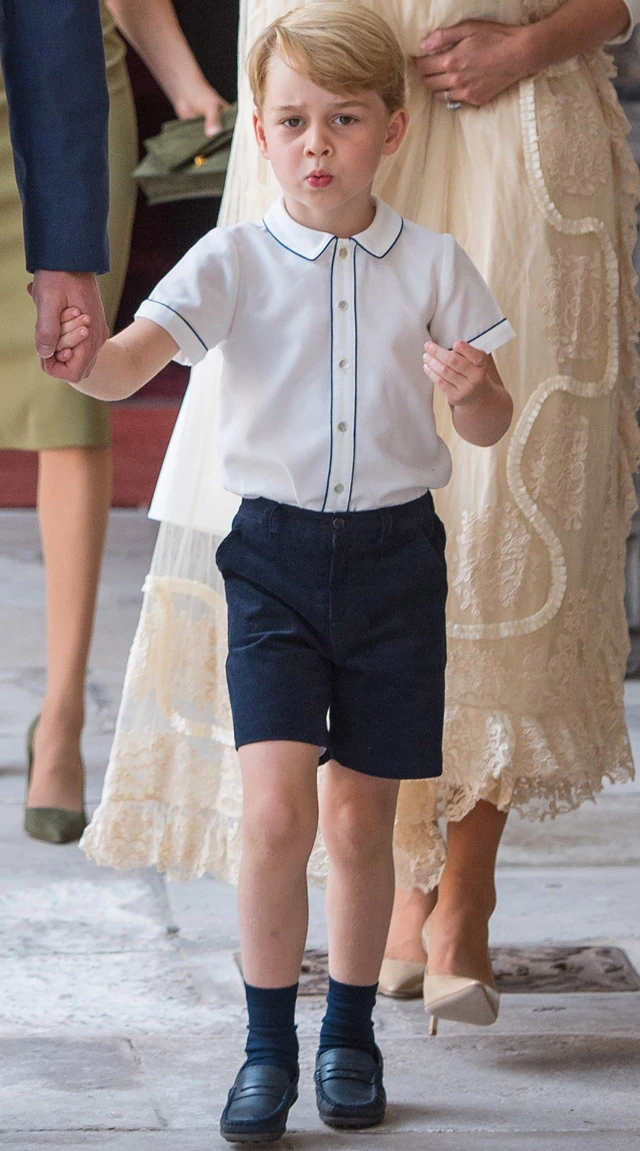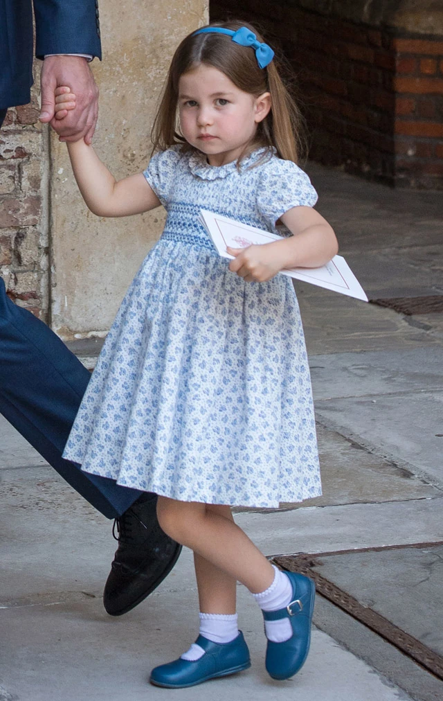 Ahhoz képest, amit Meghan és Harry esküvőjén produkáltak, most egész visszafogottak voltak és lassan sétáltak apukájuk mellett. Sarolta tündéri fehér alapon kék mintás ruhájában cukiskodott, amivel György herceg kék nadrágja és fehér ingje teljes összhangban volt.