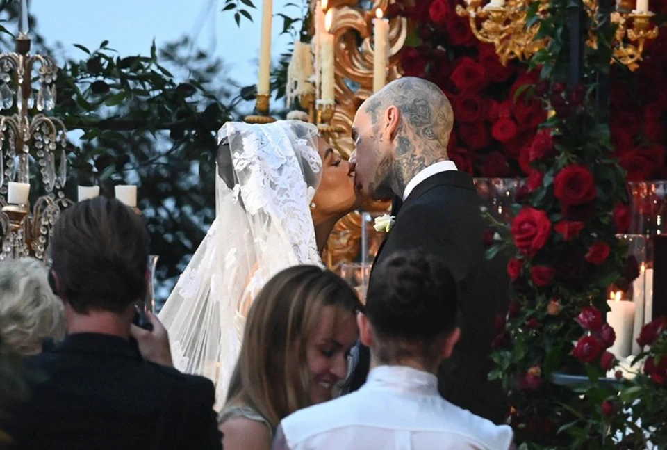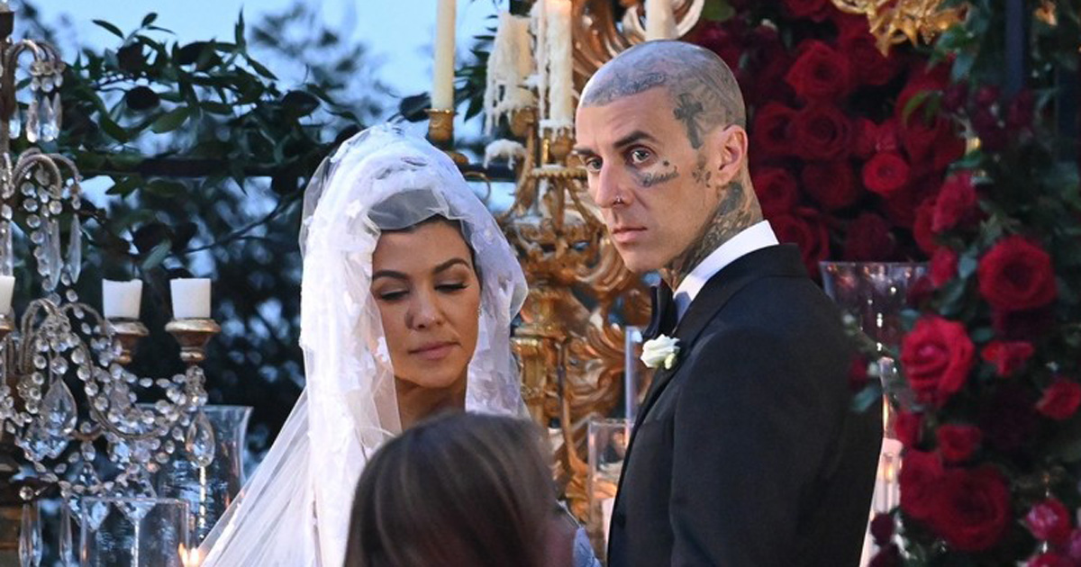 Travis Barker és Kourtney Kardashian itáliai esküvője tulajdonképpen egy négynapos megabuli volt, aminek a megkoronázása volt a szertartás. Az az eseményre egy Dolce & Gabbana miniruhát választott. Ugyan az esküvői ruha cseppet sem volt szokványos, a szertartáson egy hosszú csipkeuszályt is viselt hozzá Kourtney, amivel együtt jóval hagyományosabb menyasszonynak látszott.