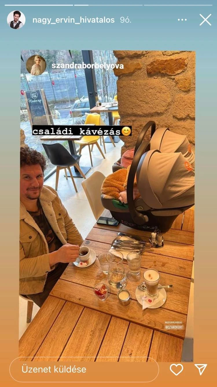 Nagy Ervin és Borbély Alexandra életét (és nem mellesleg a miénket is) arannyá változtatja a két imádnivaló csöppség: Elza és Franciska. Az ikerbabák 2022. október 12-én jöttek a világra; a vártnál korábban érkeztek, de szerencsére (néhány hétnyi erősödés után) teljesen egészségesen térhettek haza békés otthonukba. Azóta szebbnél szebb képeket láthatunk a kis család mindennapjairól; itt például egy kávézóban kapcsolódnak ki közösen. Amíg a szülők lazítanak egy finom forró ital mellett, addig a babák is megpihennek a babahordozóban.