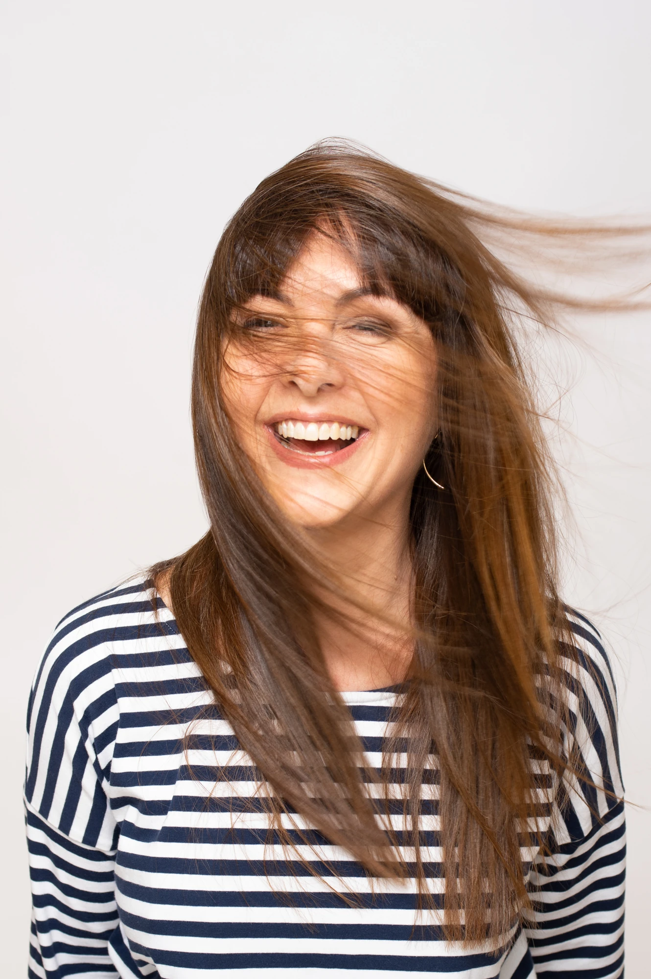 Jellegzetes, már a védjegyének számító csíkos felsőben és fekete nadrágban fogad a szalonban. A tavaszi frissességet átvették az ősz színei a hangulatos budai villában, két dolog azonban mindig állandó Nagy Orsolya kínálatában: a harmónia és a kifinomultság.