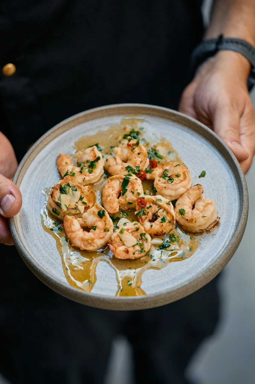 Minden fázis előtt leültünk egyeztetni, mindegyikünk hozta a maga ötleteit. Kiindulási pont az a spanyol szakácskönyv, amit a színházunknak felajánlott könyvek közt találtam, a ruhatári előcsarnokban. Egyébként Norbihoz képest földhözragadt vagyok; például nem tudtam volna összerakni a gambas-t (gambas pil-pil, a spanyolok egyik kedvenc eledele is szerepel a menüben – a szerk.) a disznó füllel, de mégis, ha valaki megkóstolja egymás után a két ételt, rájön, hogy összeillenek.