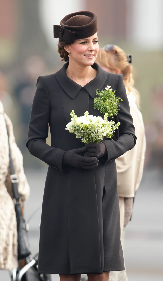 Szokásához híven egy Catherine Walker kabátban volt Kate a 2018-as Szent Patrik napi rendezvényen. A zöld Gina Foster kalap is tökéletesen állt neki. Ezt szintén nem először volt rajta, a 2014-es rendezvényen már hordta.