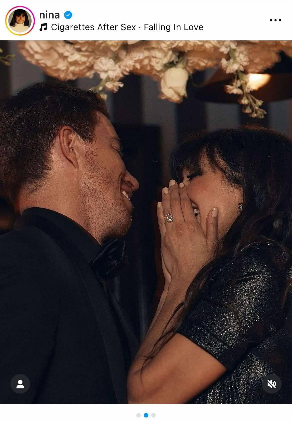Shaun White végül október végére szervezte meg a lánykérést New Yorkban, a Golden Swan étterem privát termében. Hogy Nina biztosan ne sejtsen semmit, egy hamis meghívót készíttetett, ami egy „Vogue és CFDA” vacsorára szólt - még Anna Wintour jelenlétét is megígérve. Nina végül elfogadta a meghívást, az étteremben pedig kedvese várta egy virágokkal díszített boltív alatt. Shaun letérdelt, és a hosszan rejtegetett ötkarátos Lorraine Schwartz gyűrűvel megkérte szerelme kezét, aki örömmel mondott igent. „RIP pasi, helló vőlegény” – írta a színésznő Instagram oldalán, és White is lelkesen posztolt az eljegyzésről: „IGEN-t mondott.”