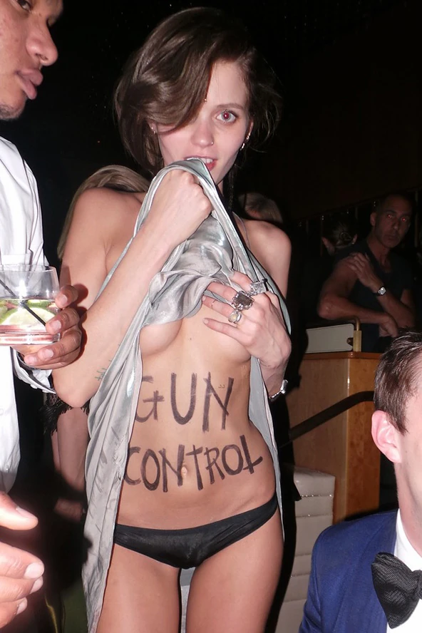 Nos, voltak azért hiteles vendégek is, mint például a mindig is kicsit különcnek számító Abbey Lee Kershaw. Az elmúlt évek egyik népszerű modellje, aki rockzenei karrierbe kezdett nem is olyan régen, felhasználta az alkalmat, hogy tiltakozzon. Az ausztrál szépség nem először adott hangot véleményének, a közösségi oldalakon is felszólalt már a fegyverviselési engedélyek szigorításáért.