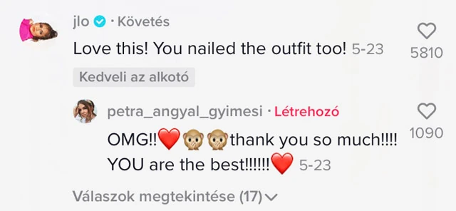 Jennifernek annyira tetszett Petra videója, hogy azonnal kommentelt is! Ez azért nem semmi!