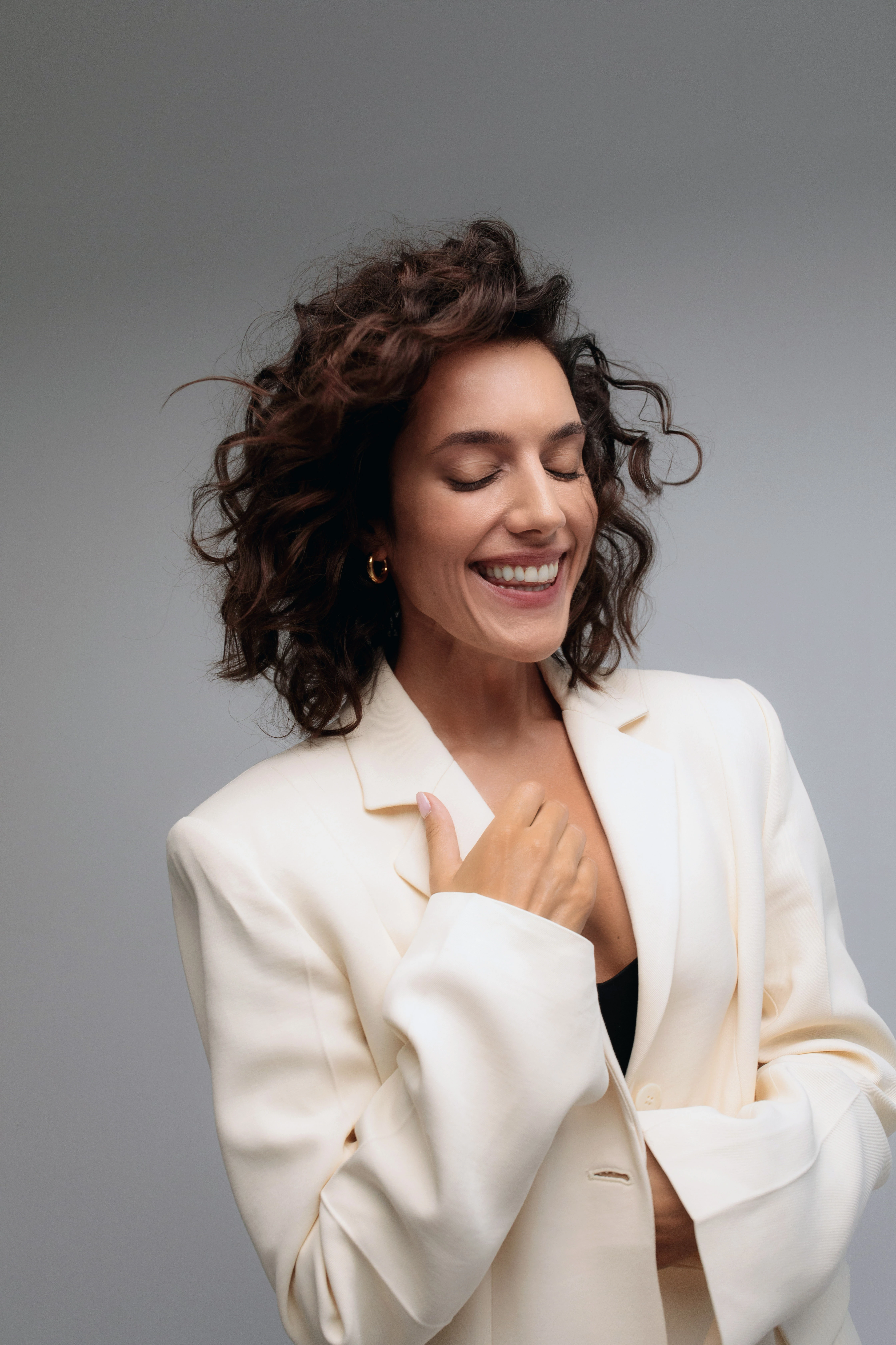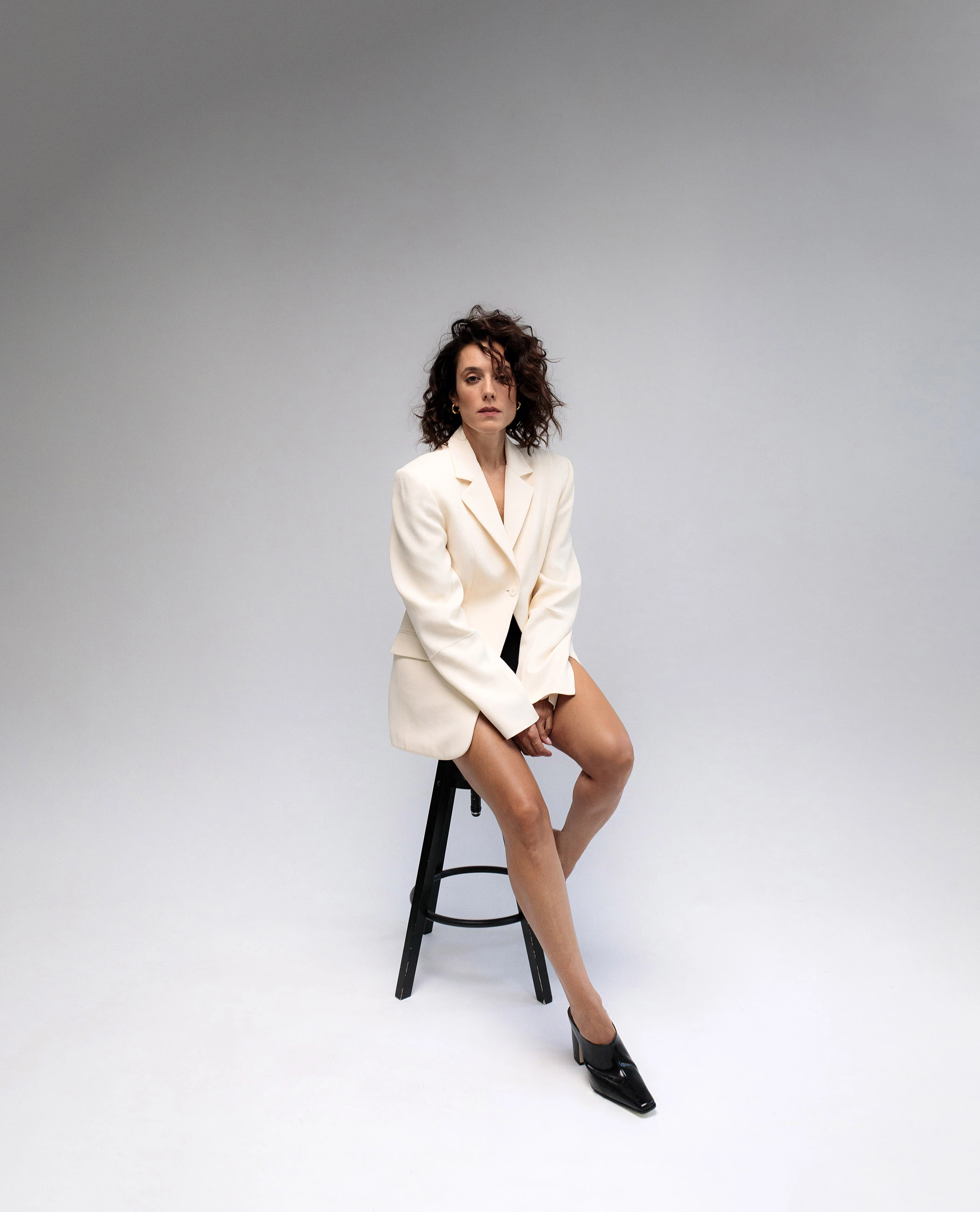 Pálmai Anna mostanra eljutott oda, hogy erőt tud meríteni apróságokból is, megtanulta megbecsülni és értékelni a boldog pillanatokat - Blézer: VICTORIA BECKHAM x MANGO, Ezüst fülbevaló: THOMAS SABO, Papucs: KAZAR